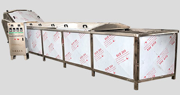 A葉菜類:收菜--分揀輸送--氣泡清洗(粗洗)--氣泡清洗殺菌機--噴淋清洗(凈洗)--風(fēng)干瀝水--包裝輸送。